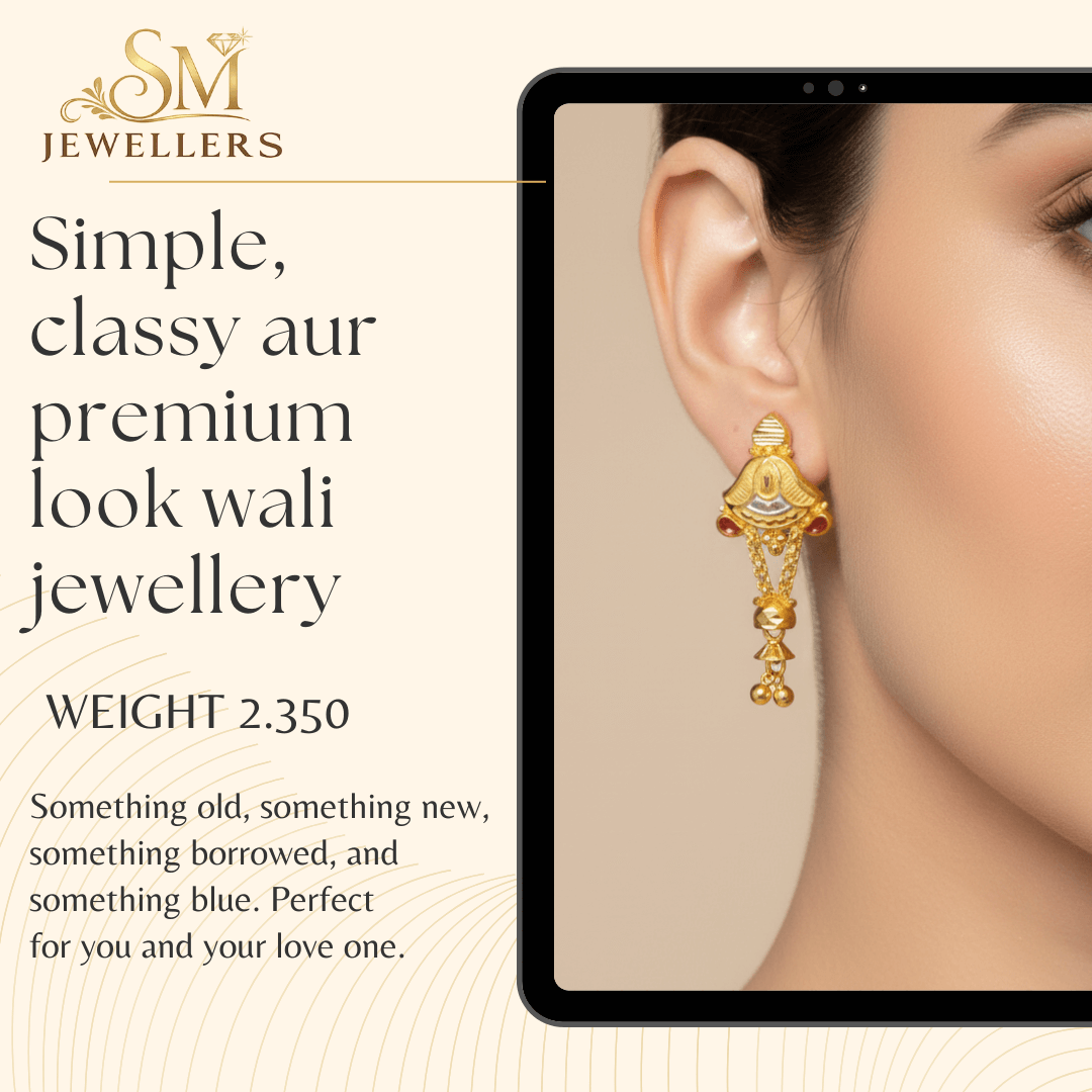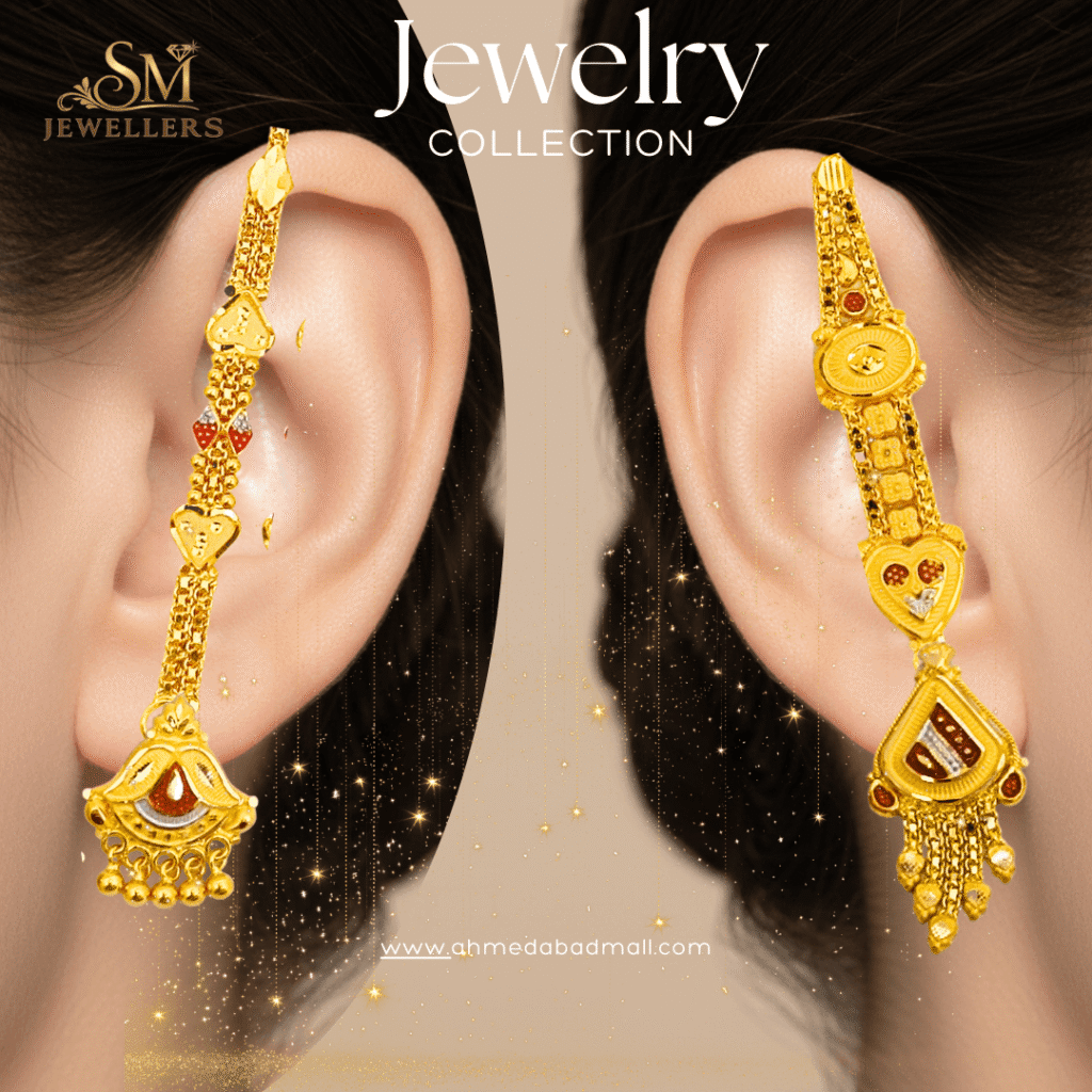 30+ years of gold artistry crafted in Ahmedabad. Premium Butti & tops for wholesale and custom retail orders.Lightweight, durable and finely finished gold ear chains & Butti, directly from our manufacturing unit. Price on request via WhatsApp.